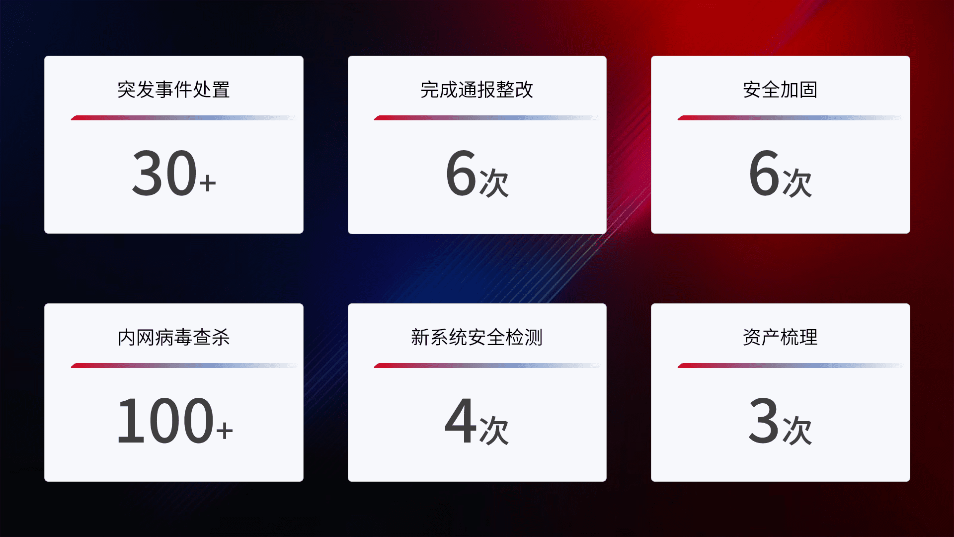 网络安全加固与风险管理:通过技术加固手段,,,如加强区域隔离,,,缩减攻击内网横向移动的范围;优化现有网络安全管理制度,,,降低网络威胁暴露面,,,,减少被黑客攻击的可能性。。